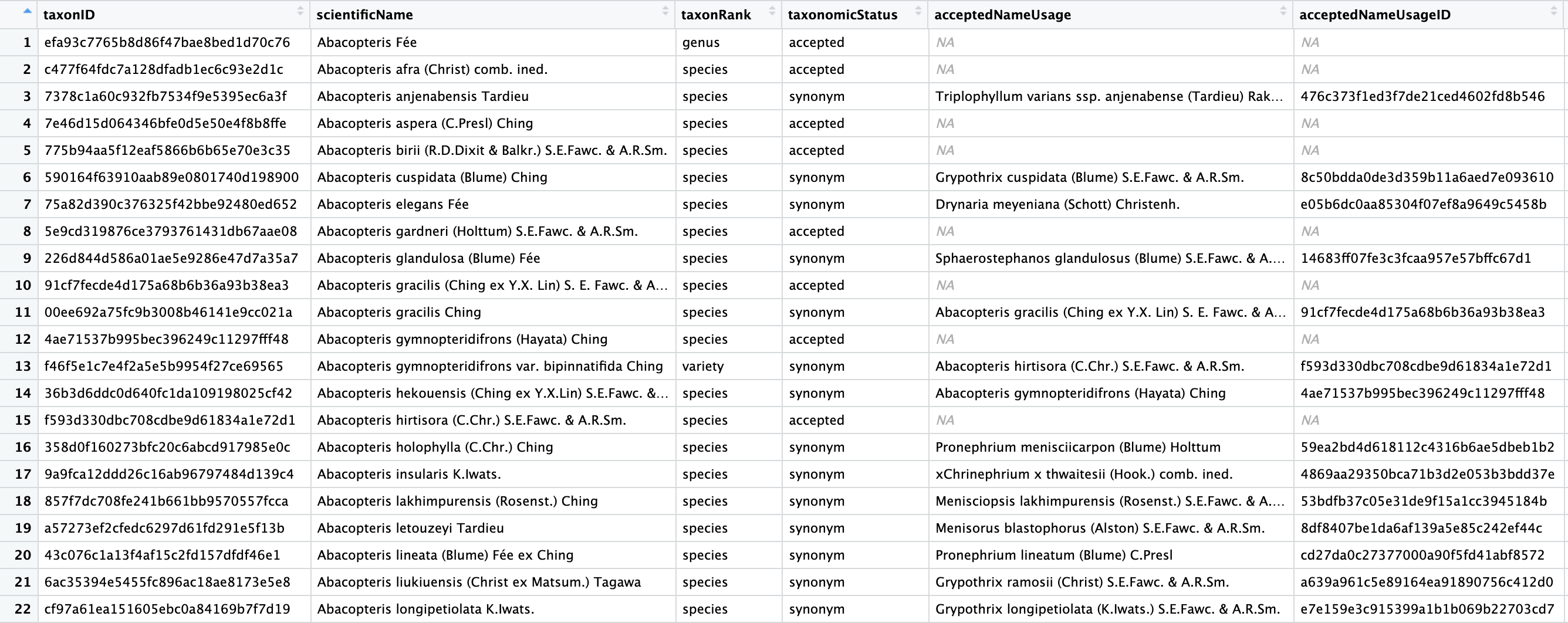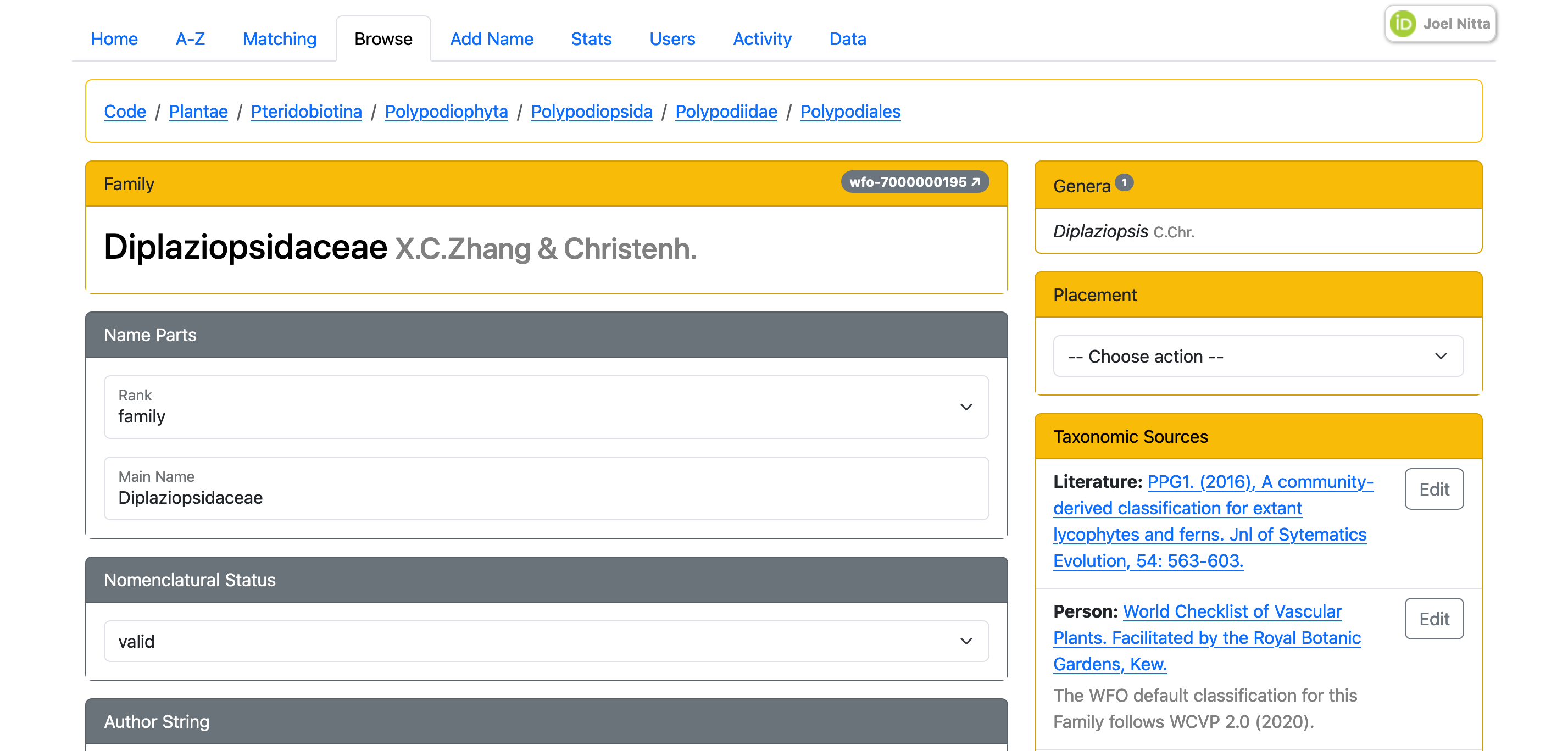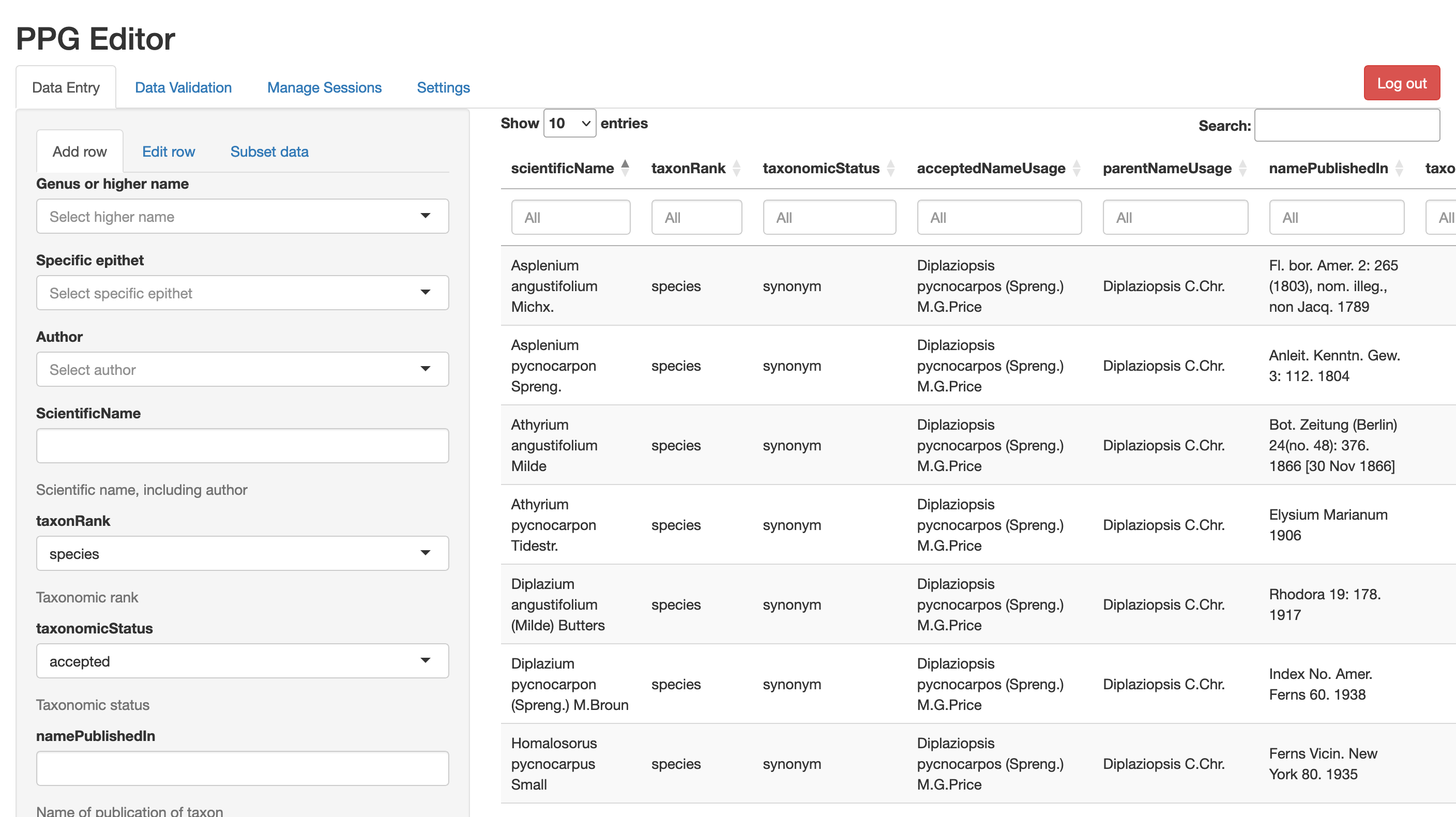 dwctaxon to help edit the data from World Ferns to implement the changes we’ve voted on so farBy using a web app, PPG members can simultaneously edit the database while minimizing data entry errors