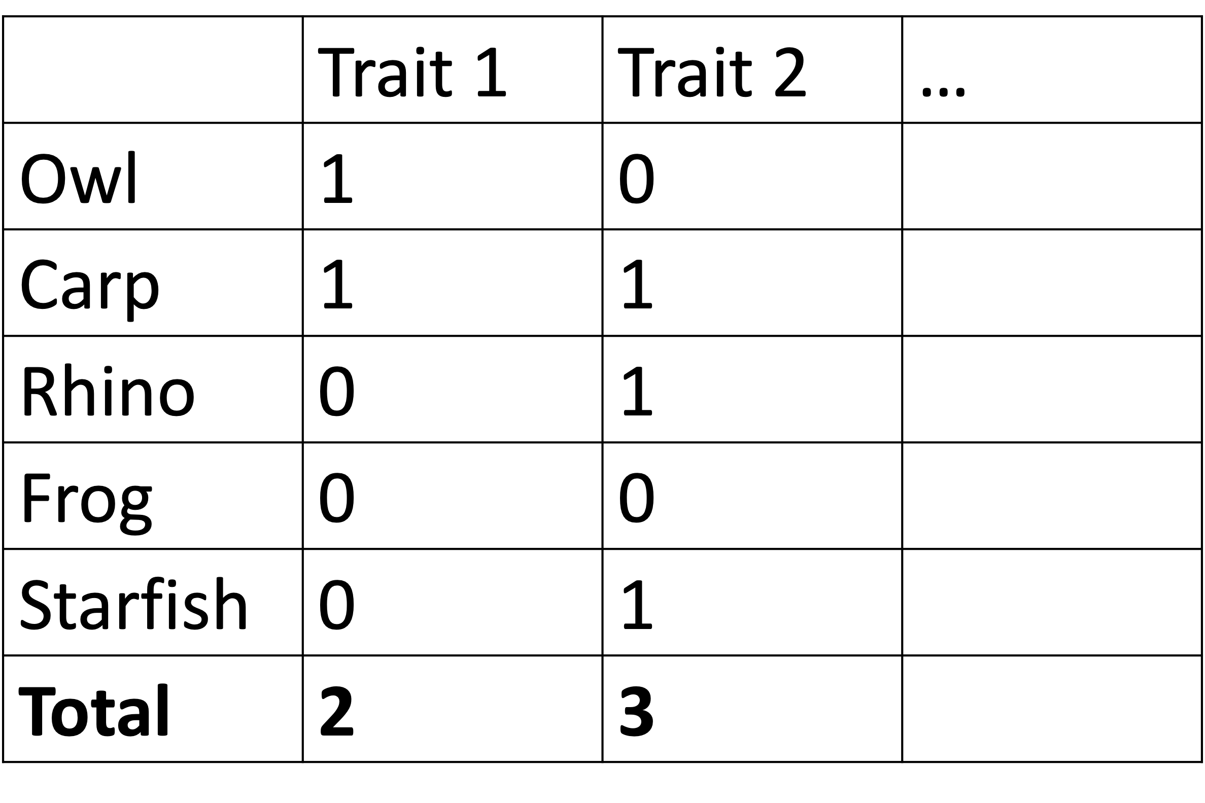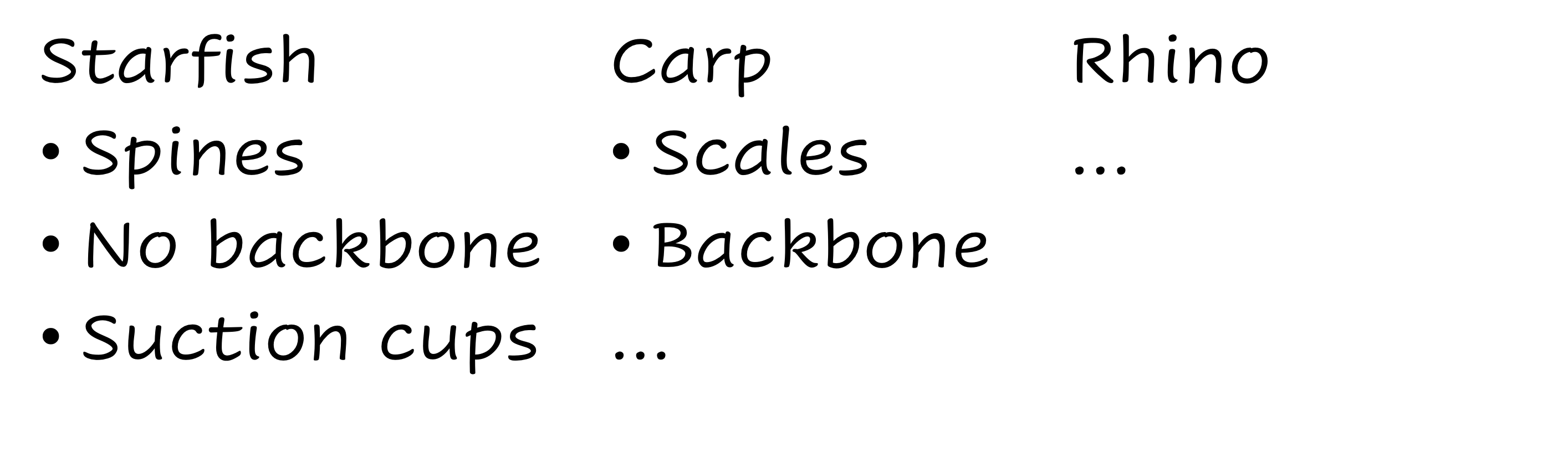 List characteristics of each species 共通に持っている特徴を探す