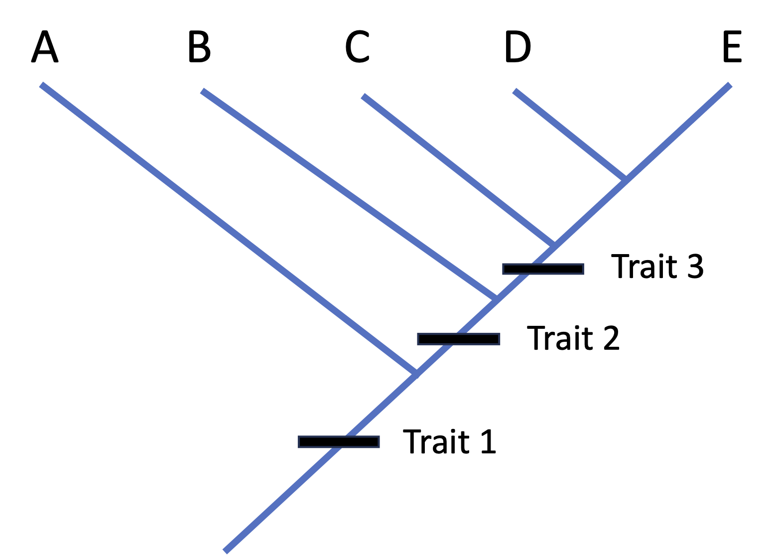 Indicate on the tree where the characteristics evolved その特徴がどこで進化したのかを系統樹に示す。