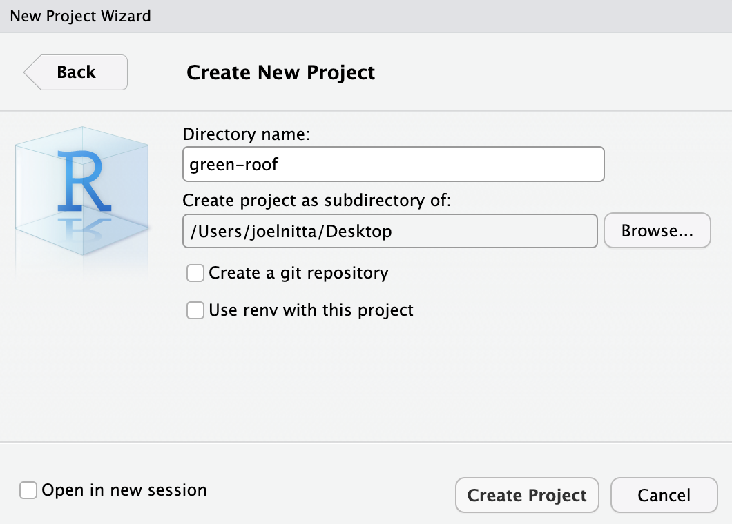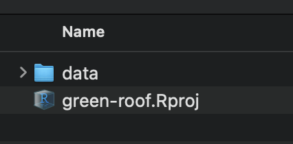 新しいプロジェクトには、green-roof.Rprojファイルが入っている