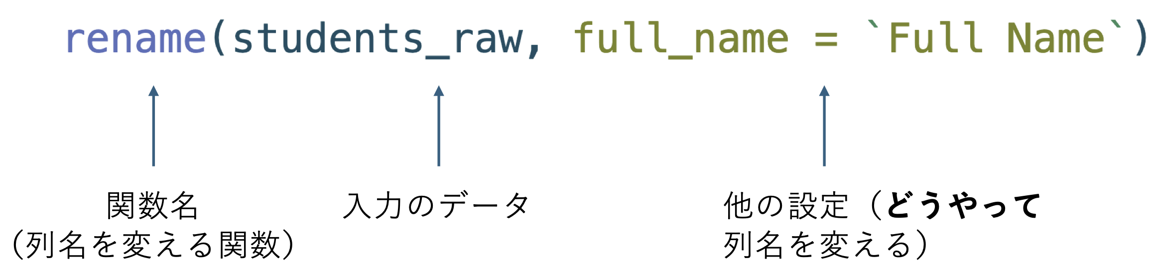 rename()で列名を変えるrename()は列名を変更する関数です。